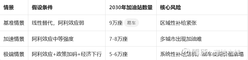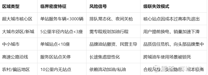 区域补给断档是级联失效的最危险形态。当某一片区(如城市新区、特定高速公路段)的站点集中退出,车主面临"无油可加"的困境,其用车成本不是上升,而是趋于无穷大——这一场景将直接摧毁燃油车在该区域的使用价值,引发恐慌性换购潮。