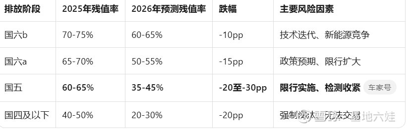 2026年被识别为残值率崩盘的关键临界点,其核心驱动因素是排放法规的升级与政策预期的兑现: