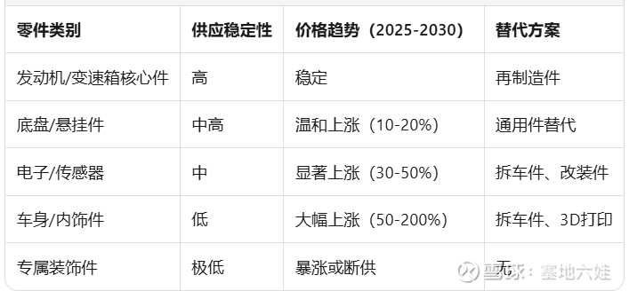 专属件危机:车身覆盖件、内饰件、电子模块等专属件,一旦停产,价格可能上涨2-5倍,且供应不稳定。对于车龄5-8年的燃油车,单次重大维修费用超过车辆残值的情形将日益普遍,"修不如弃"成为理性选择。