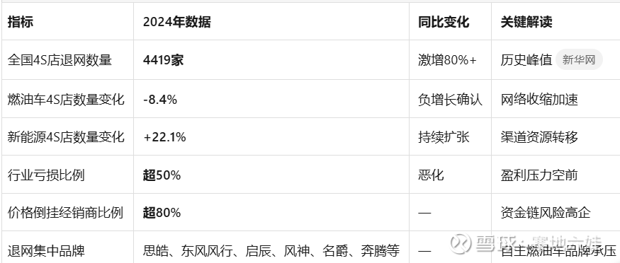 2024年汽车4S店退网数量达4419家,这一数字较历史年均水平(约2000-3000家)激增数倍,标志着传统汽车流通体系的剧烈重构。
