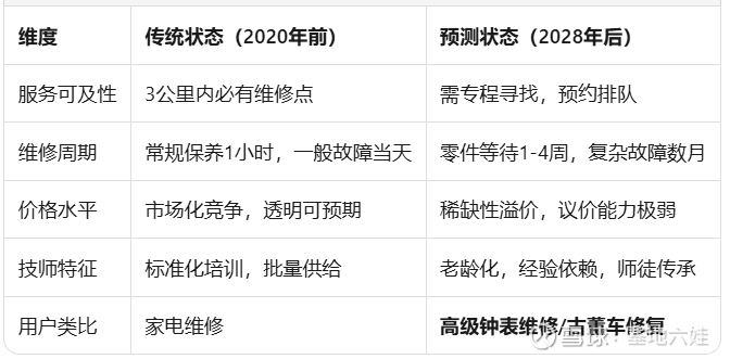 这一转变的临界点在于:当燃油车保有量占比降至20%以下,维持规模化售后体系的经济基础不复存在,剩余需求只能以"特种服务"形式满足,成本数倍上升。对于普通家用车车主,这种维修体验将直接推动提前报废或置换决策。