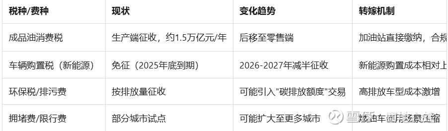 成品油消费税的后移改革(从生产端后移至"库发直销和枪发环节")已对民营加油站形成新一轮冲击,加油站需直接承担税收缴纳义务,合规成本上升。当燃油车保有量下降,基于燃油消费的税收基础收缩,但道路维护、交通管理、环保治理等支出刚性,剩余燃油车车主的税负转嫁成为大概率路径。