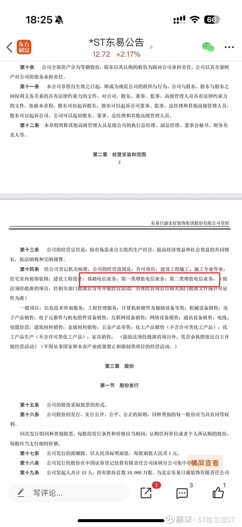 $*ST东易(SZ002713)$ 公司变更经营范围成功了!公司章程第二章的第十四条:公司的经营范围是:基础电信业务;第一类增值电信业务;第二类增值电信业务(看截图)。这是上市公司彻底脱胎换骨,可以接算力订单了!下一步就是华著算力注入+更名借壳,一家全新的算力公司比肩摩尔线程正式曲线上市!先来十个涨停板不为过吧?