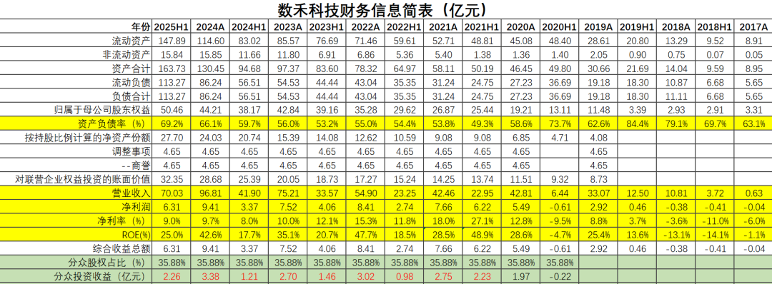公司2025H1的投资收益总额为3.75亿,权益法核算的投资收益为3.46亿,其他乱七八糟的合计贡献了0.29亿。这3.46亿全部是由数禾科技贡献的,这也是分众对外投资中唯一成功的一笔,其他的加起来勉强跑赢银行存款。