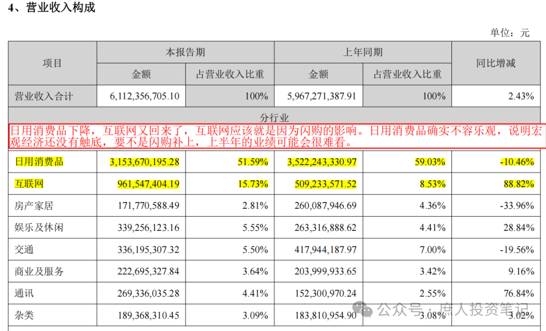 二是对于宏观大环境对分众业绩的影响估计不足。上半年消费品行业的营收掉了3.7亿,要不是外卖大战三傻(主要是阿里)贡献的互联网广告收入增加了4.6亿对冲,今年的业绩会很难看。