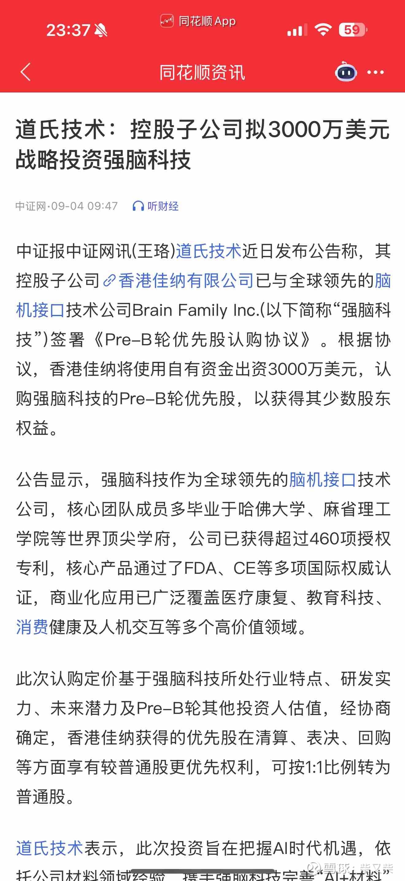 央媒点赞强脑科技的技术.a股唯一入股强脑科技+铜矿+固态电池的道士技术,明天能涨么…都回调到20天线了$道氏技术(SZ300409)$ $立讯精密(SZ002475)$ $长川科技(SZ300604)$