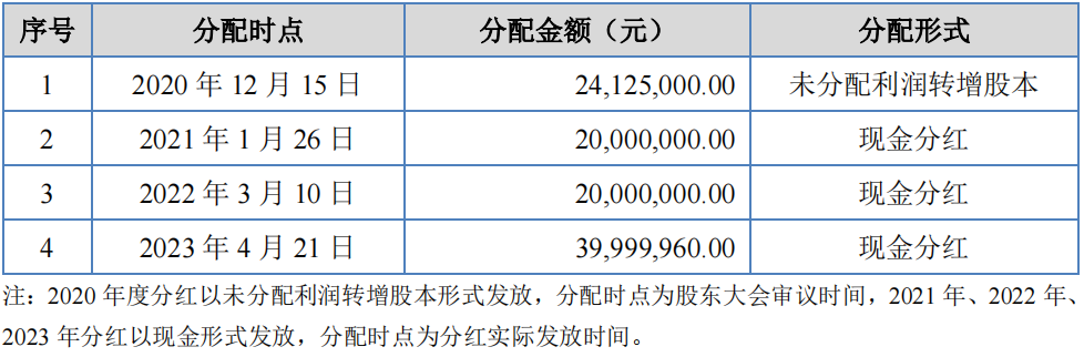 根据招股书,在报告期内,今大禹共进行了四次股利分配,其中在2021年、2022年及2023年分别进行了现金分红,金额分别为2000万元、2000万元及约4000万元,三次现金分红金额共计约8000万元。