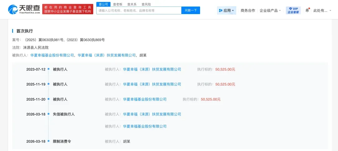 天眼查法律诉讼信息显示,近期A股上市公司华夏幸福(600340)因无正当理由拒不履行执行和解协议,被涞源县人民法院列为失信被执行人。该案执行标的仅5万余元,于2025年11月立案执行,而公司却拒绝履约。