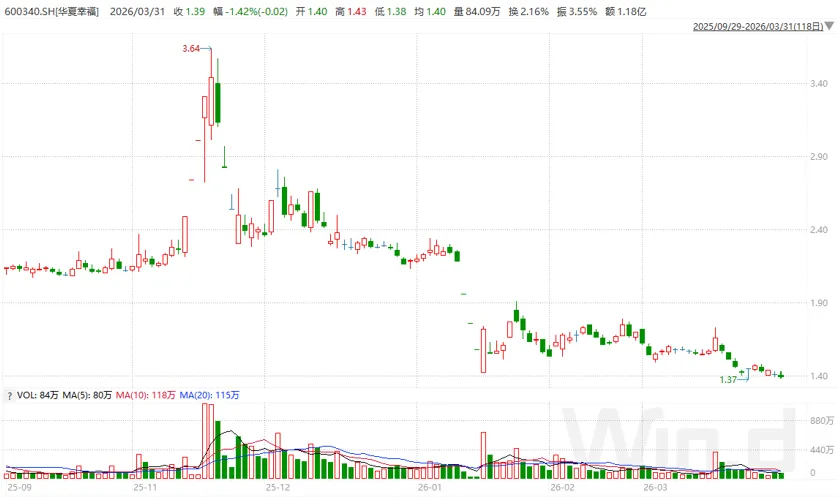 2025年11月,华夏幸福披露因一笔417万元工程欠款,被债权人申请启动预重整程序,公司对此表示“无异议”,并披露债务重组进展,市场一度将其视为化债的重要转机,公司股价在11月13日至19日连收四个涨停,从2.24元/股涨至3.64元高位,5个交易日累计涨幅超50%。