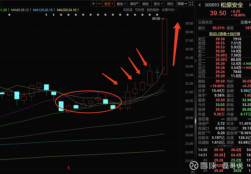 这个图形是真漂亮,理想中的走势,横盘,小突破,不断小突破后,来了一波大突破,基本小突破的那几天都可以视作买点,就是要等几天才行,提前跟踪到了,买入的机会很大,如果是今天突破才跟踪到,不一定有勇气会买,持续跟踪的买点,跟刚跟踪的买点是完全不一样的,决策的时候考虑到的东西也完全不一样,就好比,你一直看好某一样东西,从5块涨到6块涨到7块,你可能会毫不犹豫的买,但是如果涨到10块20块,就真不一定会买。$上证指数(SH000001)$ $松原安全(SZ300893)$