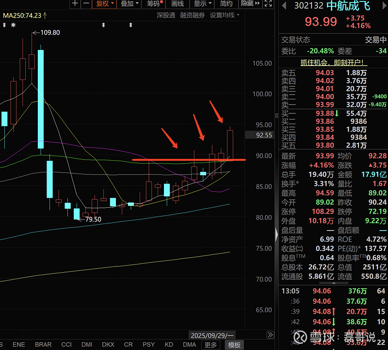 连续小突破,可能会有大突破,这种类型的票,我一般都会跟踪一段时间,只要出现合适的介入点就可以买,跟踪的时间有长有短,可能1-2天,可能10天半个月,只要你能一直坚持跟踪,总会找到买点的,跟踪个1-2天没反应就放弃,等那天突破出现买点了,你大概率也是不会买的,跟踪个股的时候要有耐心,长期多批次的跟踪多只个股,我就不相信你真的找不到买点?$中航成飞(SZ302132)$