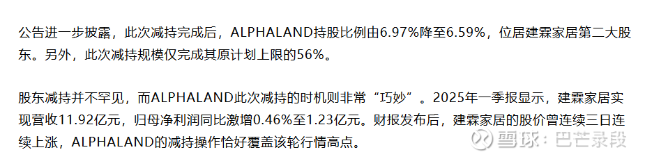 2025年2月,公司持股5%股东Alpha Land(简称阿尔法)公告减持,预计不超过448万股,理由是根据自身资金需求。一般股东减持存在2种主要的可能,一是真的要用钱,二是价格实在太高了。