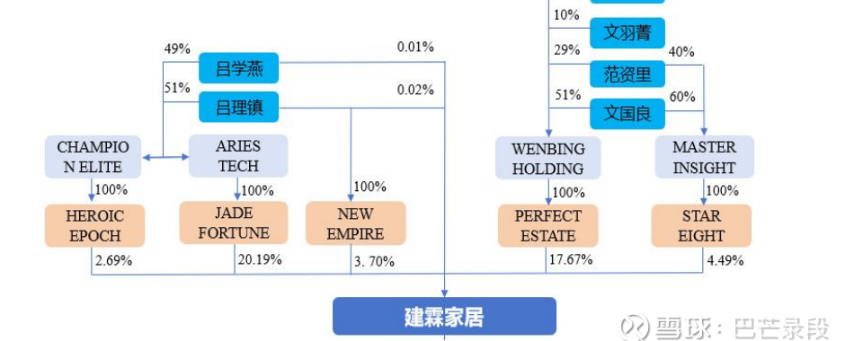 建霖是一家台资企业,最大单一股东持股才20%,其股东通过在海外注册的离岸公司进行控股,实际上由吕理镇,文国良,吕学燕,范资里,文羽菁,文馨家族共同控制。历史上,该企业有四个家族共同控制。2023年,李相如家族、朱玉娇家族因个人原因不在续签《共同控制确认书》,两个家族持有建霖家居股权均为9.05%,合计超过18%,建霖家居的控制人落到了吕理镇和文国良手上。这四个家族人员为董事长吕理镇家族、副董事长文国良家族、董事李相如家族、还有朱玉娇家族。吕理镇家族通过JADEFORTUNE LIMITED、NEWEMPIRE LIMITED、HEROICEPOCH LIMITED持股,文国良家族通过PERFECTESTATE LIMITED、STAREIGHT LIMITED持股,李相如家族通过ESTEEMLEAD LIMITED持股,朱玉娇通过YUENTAI LIMITED持股。持股度十分集中,前十大股东持股占比78%。流通市值仅有13亿。这样的股权结构在公司治理中是比较好的,构成了一种 “相对分散,但又有核心控制阵营” 的格局,既不同于“一股独大”,也不同于完全散乱的持股。现在部分上市公司大股东掏空现象既隐蔽又恶劣,这样的股权结构可以防止单一股东独断专行。前几大股东持股稳定显示了核心层的长期发展意愿。