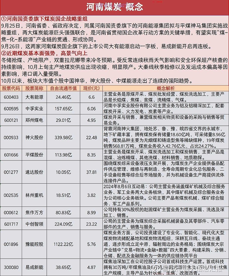 河南煤炭概念股