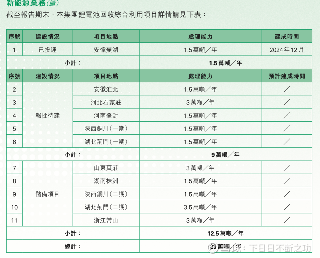 海螺创业的锂电池回收综合利用项目,累计已签约处置规模在2024年底的时候,已经达到了23万吨每年。