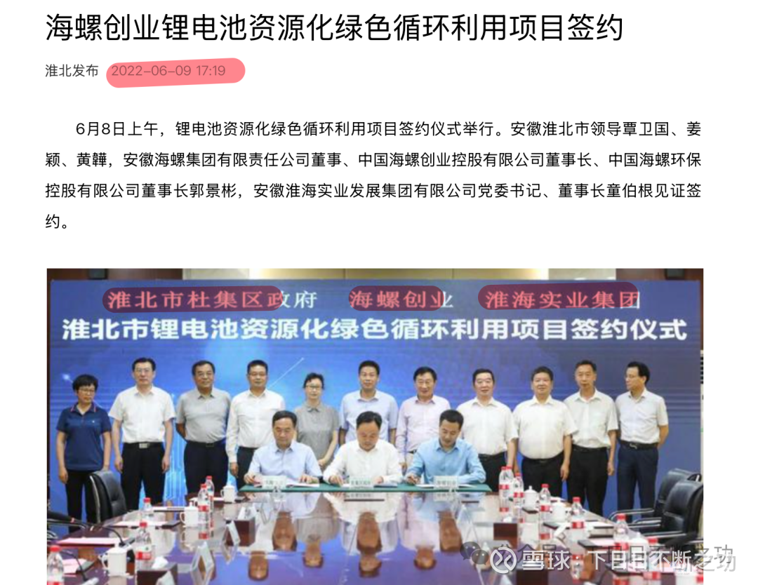 此项目名称:淮北市锂电池资源化绿色循环利用项目,于2022年6月8日签约。项目主要参与方有三家: