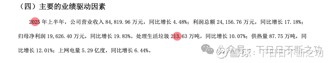 关于刚才提到的垃圾量的问题,这两年的中报数据是冲突的。如下面中报截图,关于24年上半年垃圾处理量,24年中报披露的是217万吨;而25年披露的是213万吨/1.1= 194万吨。