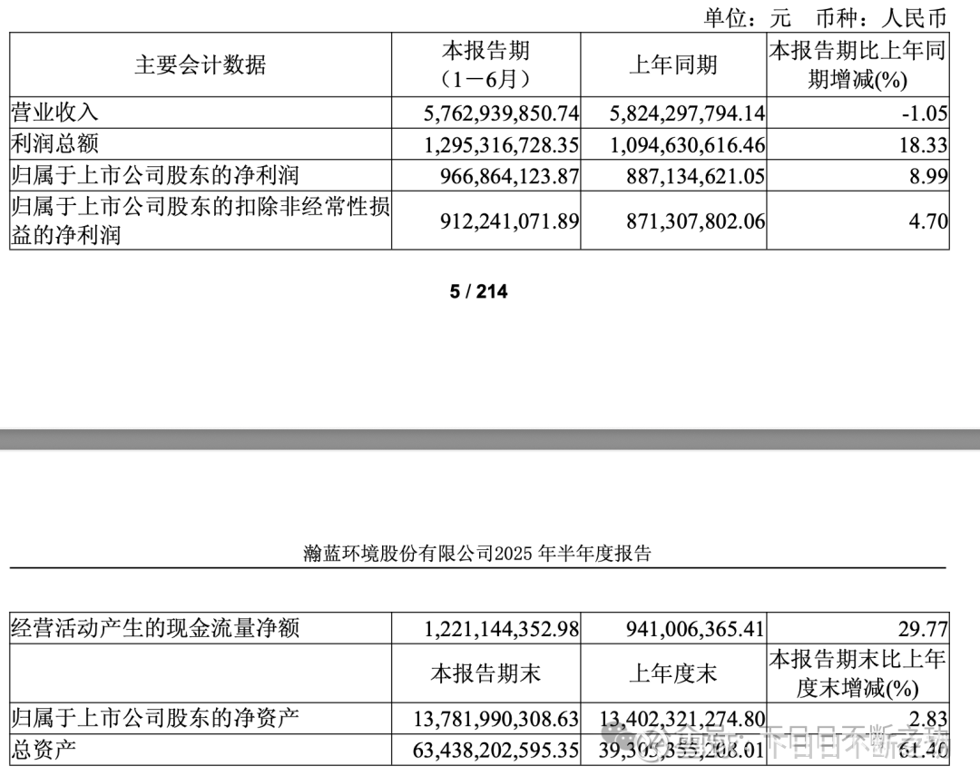 今年中报,瀚蓝环境的成绩如下: