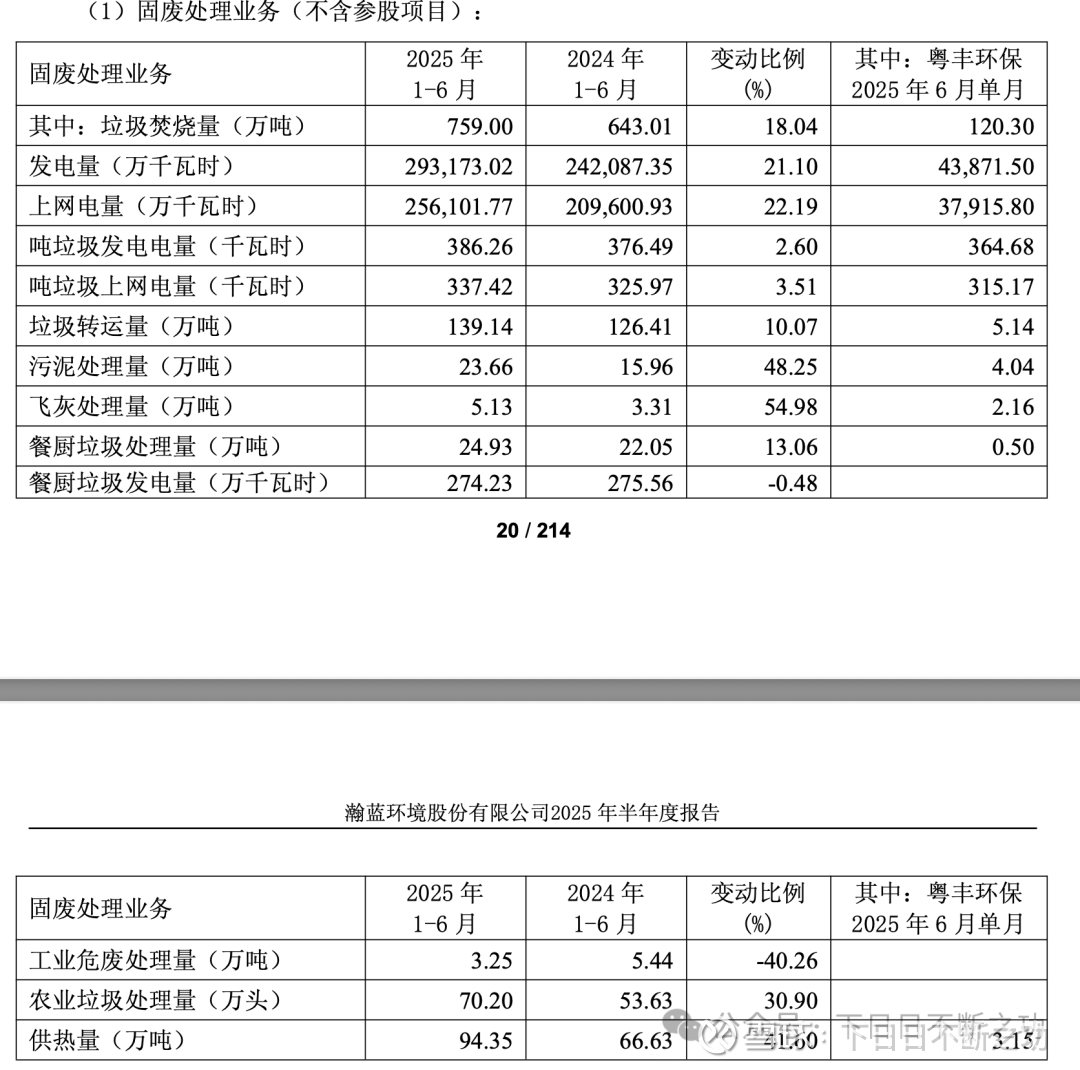 如上图,6月单月粤丰环保120万吨,1-6月瀚蓝的量就是759-120=639万吨。就是说粤丰的体量是大于瀚蓝的。