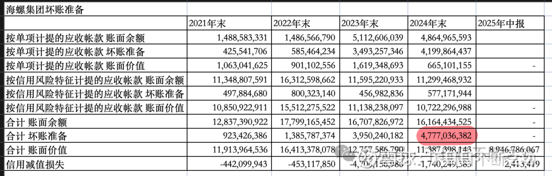 上网找到了22年以来每年的海螺集团的年报,以及25年的中报,初步浏览下来印象深刻的便是:应收账款的坏账准备金额巨大,达到了48亿元!!