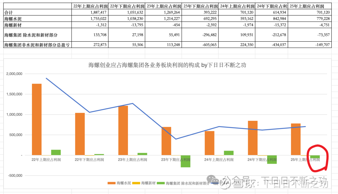 另外也有坏消息,如下图海螺集团非水泥业务的利润数据,以前虽然有时候也是负值,但是那幅度都在信用减值之内;但是25年中报,没有信用减值的情况下利润为负,说明当期业务真实亏损。