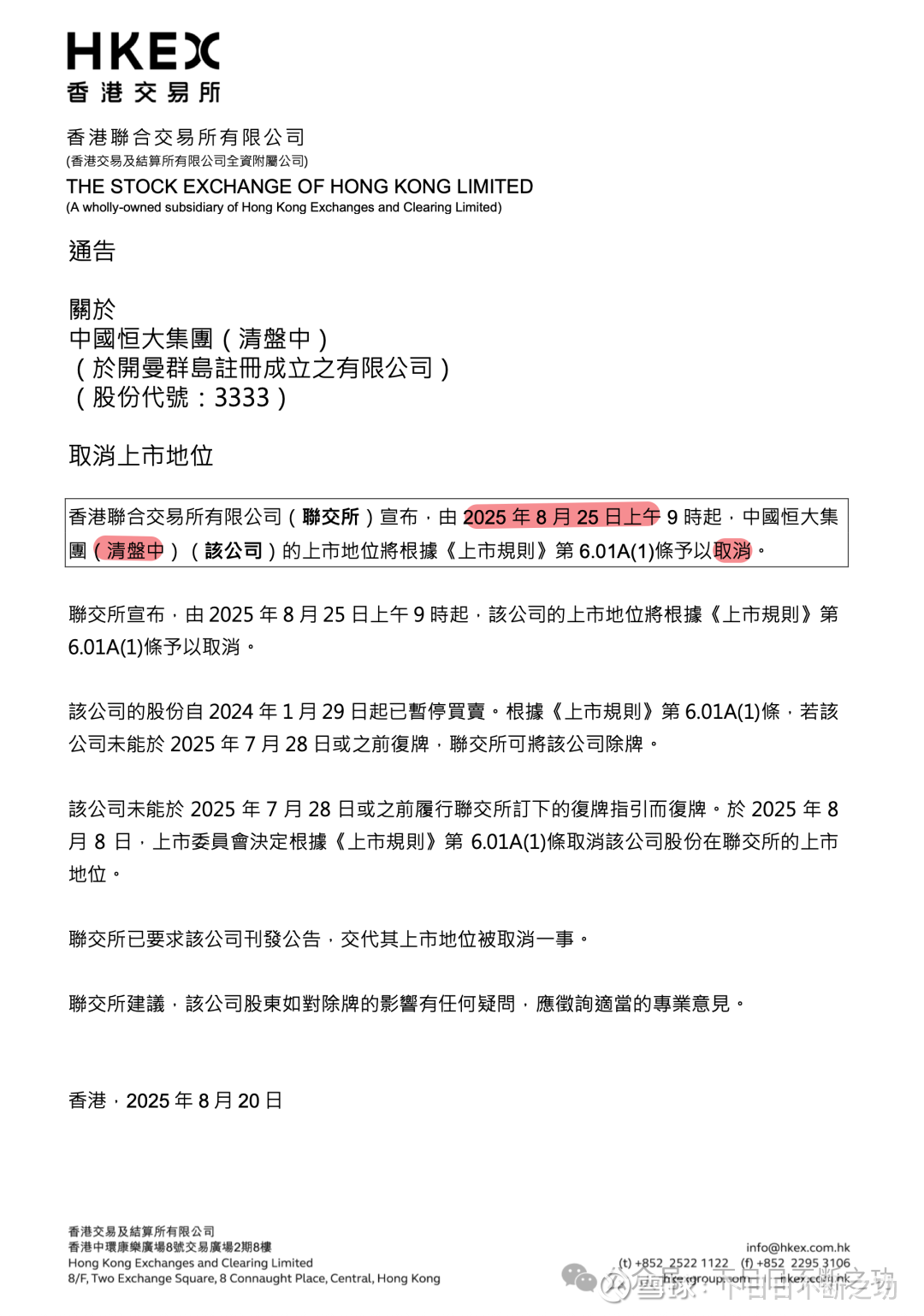而恒大公司,已经处于清盘中,且最近被取消了上市地位。