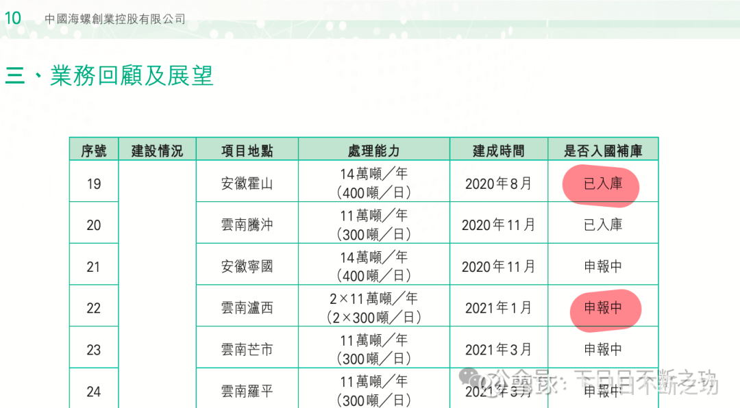 认真阅读海螺创业财报的朋友们都能发现,海创的垃圾发电项目清单中,有“是否入国补库”的标记栏,这个栏目下有三种情况: