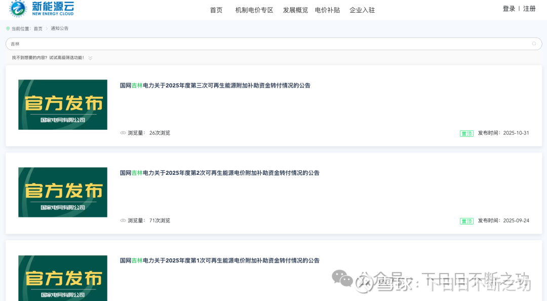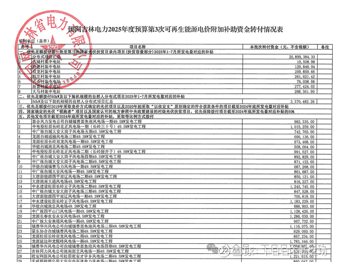 在国家电网的新能源云网站上,有国补发放明细的公示,如下面内容: