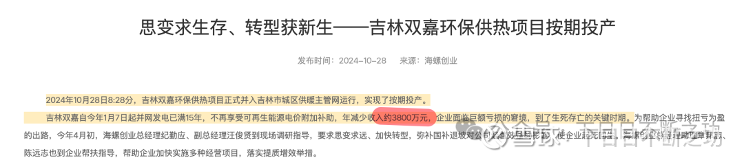 吉林双嘉有三个垃圾焚烧炉,其中两个已经运行超过15年,不再享受可再生能源电价补贴。