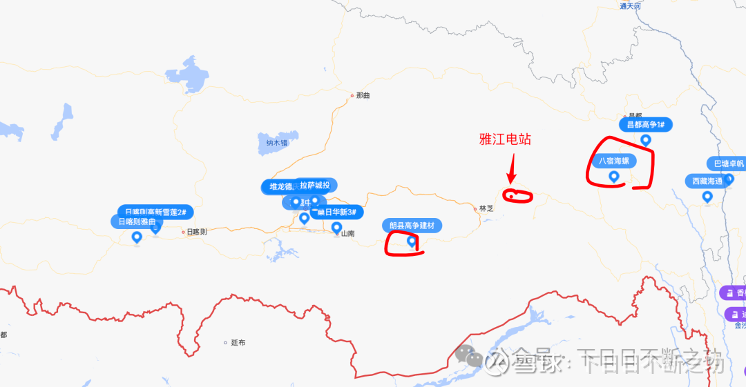 果然,这个新建的朗县高争建材,离雅江电站就很近,车程5个半小时。这样的距离在东部地区可能有成本问题,但是在西藏那样的地方,就已经是最近的存在了。跟原有的八宿海螺距离相当。
