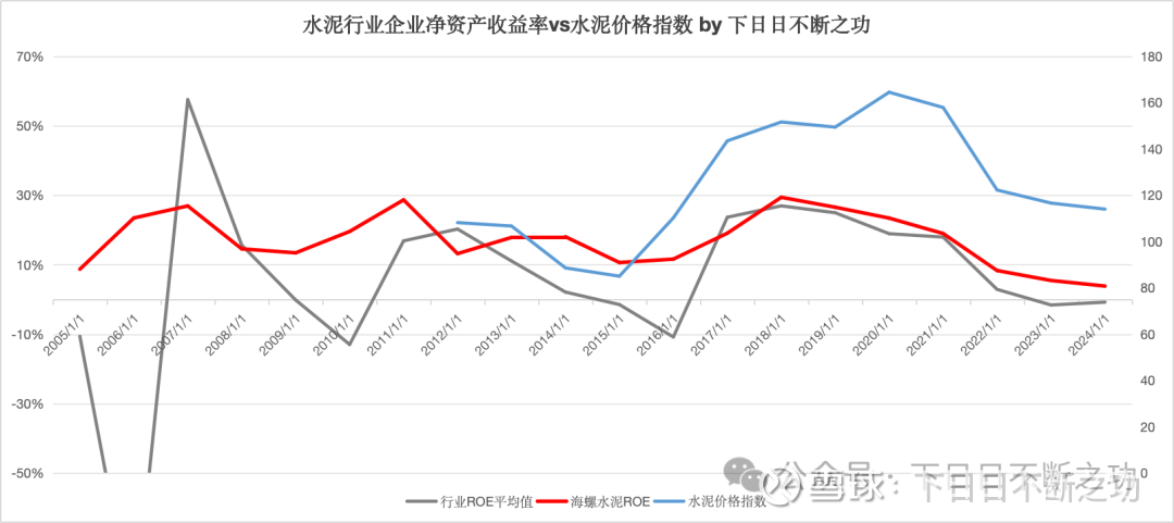 我们再把企业ROE与水泥价格指数放一起看: