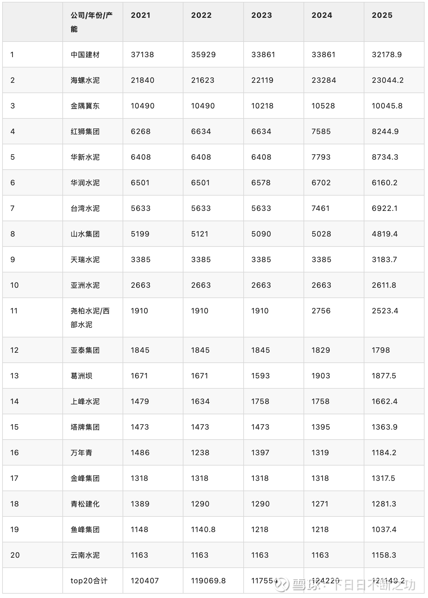 拉长5年时间看2021vs2025年,有的企业产能增加,有的减少,这体现了企业之间相对实力的变化