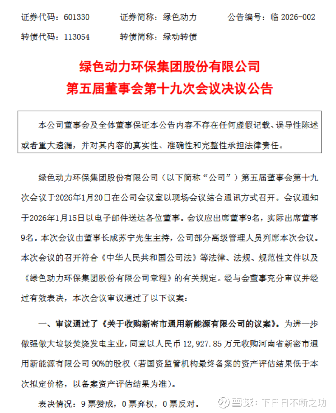 绿色动力今天发了篇公告,以1.3亿元收购了新密市通用新能源有限公司90%的股权。