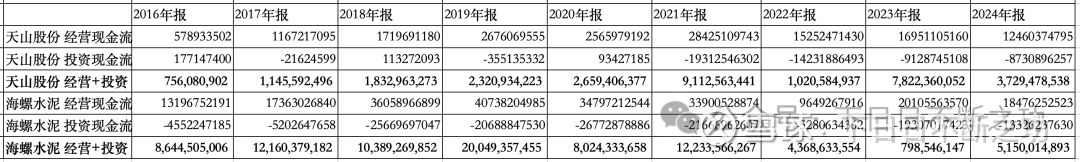 拉表格之前,本来以为这两年水泥行业不好过,天山股份亏损可能在消耗资金,实际看下来并没有。看来这个行业现金流真的是好,如此的话去产能还要花费更长时间。