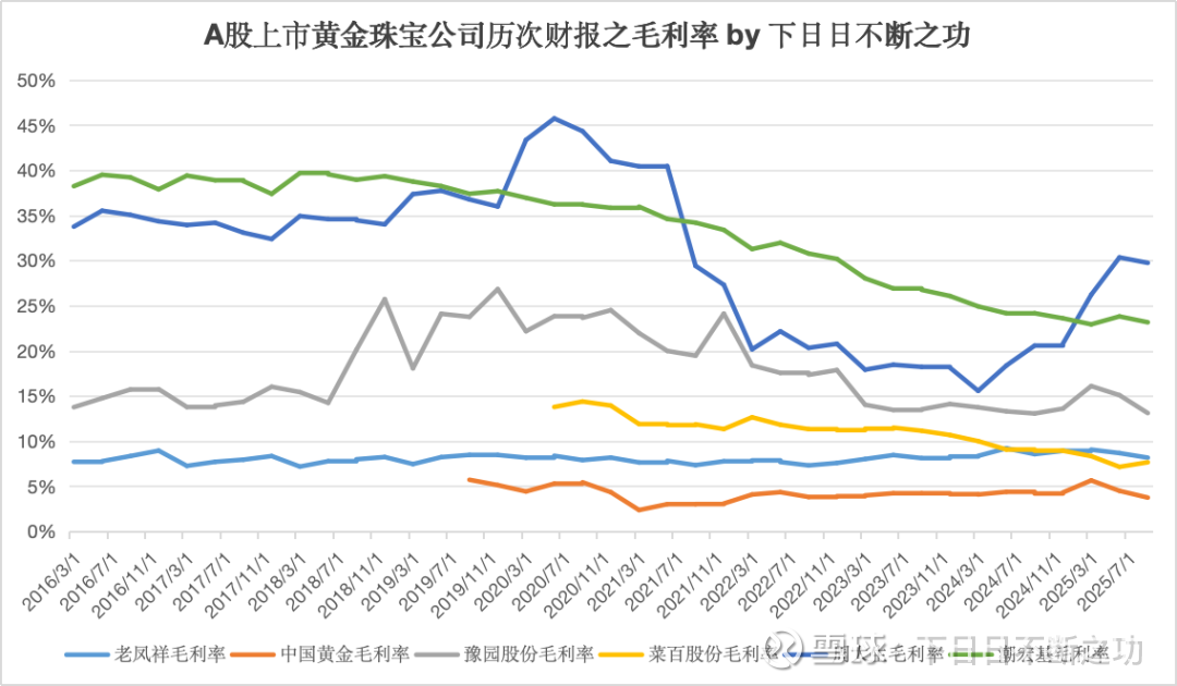 潮宏基和菜百股份这两年比较亮眼,在行业多家公司营收同比大幅下降的情况下,它们录得20%以上的增长,经营策略可以学习一下。