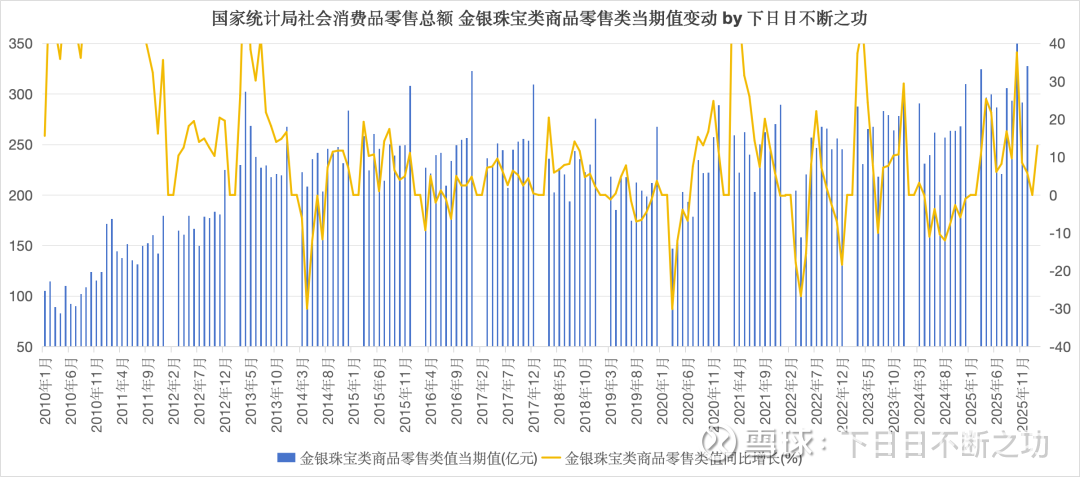 26年1-2月份金银珠宝零售额837亿,这是在去年高基数的基础上的高增长,是否代表了消费复苏