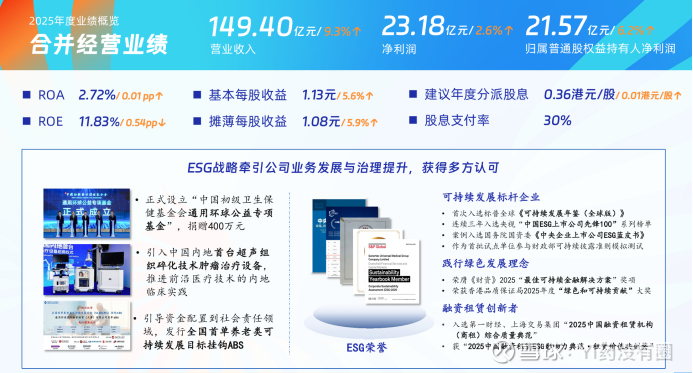业务结构进一步优化:在金融业务持续稳健发挥 “压舱石” 作用的同时,包含医疗机构、健康科技业务的医疗健康主业增长势头强劲,全年实现收入 99.02 亿元,同比增长 16.7%,占总收入比重提升至 66.3%,占比再创新高。这一系列数据标志着公司向医疗健康产业集团的转型已取得实质性成效,主业核心地位得到进一步夯实。