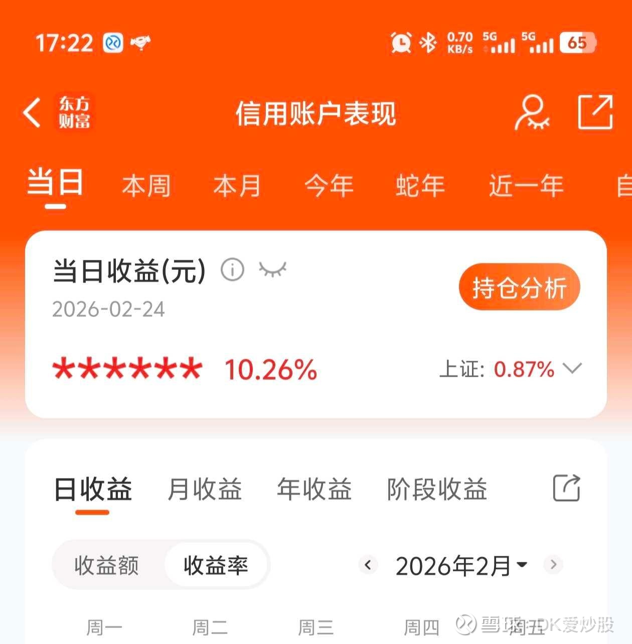 2/24春节后第一天,账户收益10%,主要得益于重仓的湖北宜化涨停、红星发展一度涨停、云天化和中国中铁也涨停。