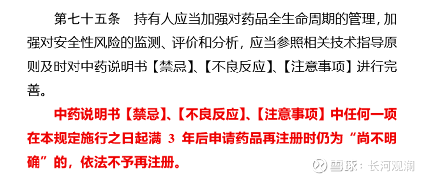 2023年新发布的《中药注册管理专门规定》第七十五条规定,到2026年7月1日之后,中药说明书中的【禁忌】、【不良反应】、【注意事项】任意一项,如果还是标注“尚不明确”,就不允许注册了。