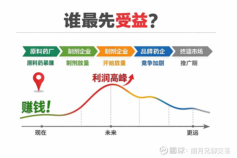 GLP-1产业链呈金字塔结构:顶层是掌握定价权的诺和诺德、礼来;中层是仿制药企业;底层是直接受益需求的原料药企业(API)。行业规律是:👉 行业爆发初期,利润先向上游集中。因为下游还在审批放量时,上游已经开始供货。顺序永远是:原料药 ——〉制剂 ——〉终端。