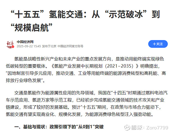 氢能源在十四五“示范破壁”,到了十五五变成“规模启航”,等市场慢慢释放消息了;