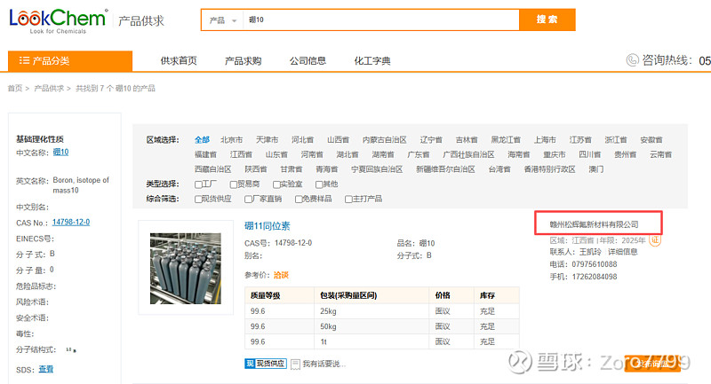 赣州松辉上架硼10及硼11同位素了,赣州松辉是