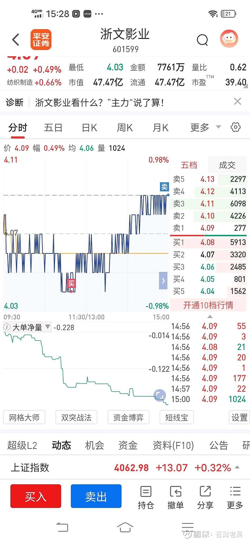 $浙文影业(SH601599)$ 真折腾啊,跌又不好好跌,上涨又不好好涨,盘中4.04打到120分钟支撑位捞了一把,尾盘先T一半,剩下的看明天有没有盈利走,大盘今天这种探底回升,明天大概率还是有拉升的预期。