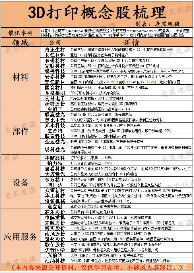 十、$银禧科技(SZ300221)$ :高分子 3D 打印材料创新者,3D 打印尼龙材料通过多项国际认证,服务消费电子、汽车内饰等领域,2025 年净利润实现三位数增长,产能扩张满足爆发性市场需求。持续开发新型复合材料,提升 3D 打印制品强度与精度,拓展应用边界。