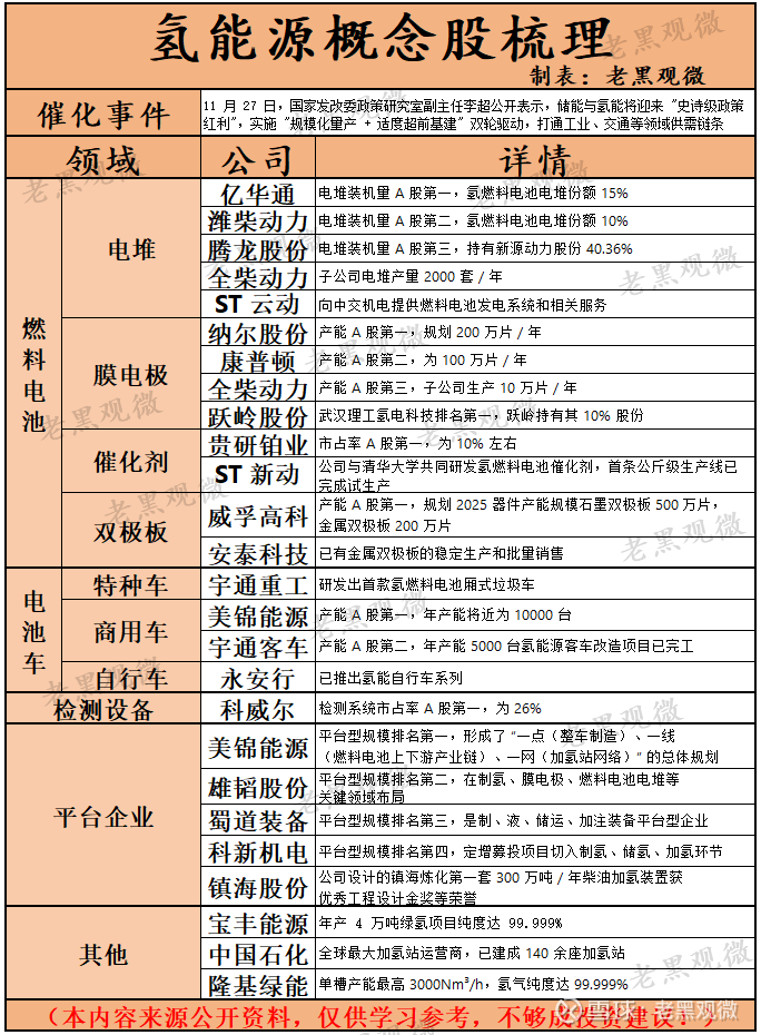 二、美锦能源:"煤 - 焦 - 氢" 一体化龙头,拥有完整氢能产业链布局。依托焦化副产氢低成本优势 (纯度高、杂质少),构建 "低成本氢源 + 场景深耕 + 区域协同 + 技术壁垒" 核心竞争力。控股飞驰汽车 (氢燃料电池整车),参股鸿基创能 (膜电极,市占率超 50%) 和国鸿氢能 (电堆),形成全产业链协同效应。