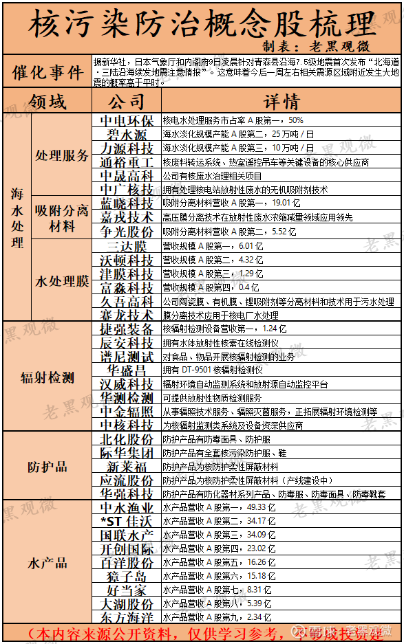 四、$中电环保(SZ300172)$ :核电水处理领域绝对龙头,市占率超 50%。完成华龙一号、AP1000 等所有三代核反应堆水处理项目全满贯,是国内唯一同时具备两大主流三代核电技术水处理经验的企业。研发 HT 放射性废液系统可高效去除碘、铯等关键核素,承接桃花江核电厂放射性废液处理系统。拥有数百项水处理专利,核电站常规岛水处理技术国内领先。
