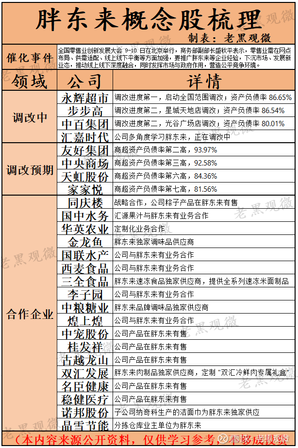 三、$中百集团(SZ000759)$ :武汉区域全面学习胖东来,首批调改门店首日销售额增长 723%,来客数增 110%。光谷店调改后日均销售 120 万元,是平时的 7-8 倍。引进 6366 个新商品,商品结构达胖东来标准 90% 以上,包括赫莲娜、雅诗兰黛等国际品牌。计划将 1700 家门店逐步改造,构建华中区域竞争壁垒。