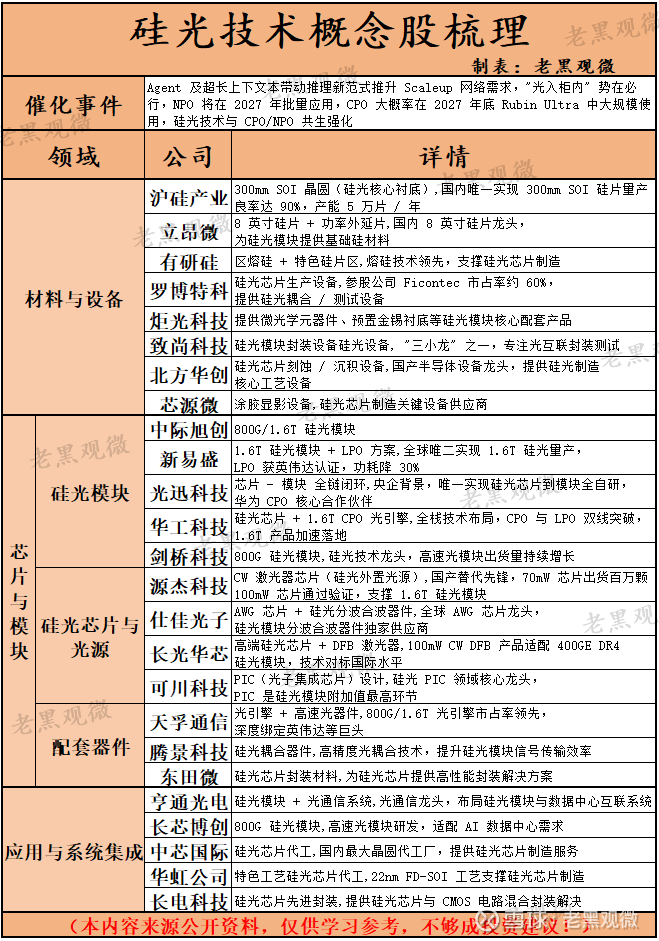 3. 产业生态全面成熟:从上游硅光芯片、CW 光源到下游 CPO/NPO 封装,从海外巨头到国内企业,硅光产业链各环节均实现突破,商业化落地加速。