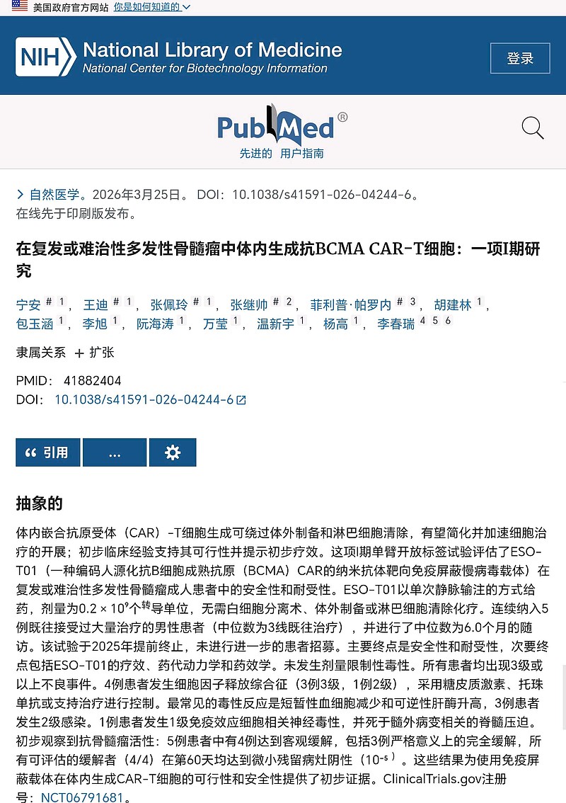 $金斯瑞生物科技(01548)$ $传奇生物(LEGN)$ESO的体内cart一期提前结束了,安全性问题太大,出现了一例死亡,且出现的峰值不规律。in vivo在BCMA要再往后了。大家有兴趣可以自己下载论文。@Kertosis 总有关注么。