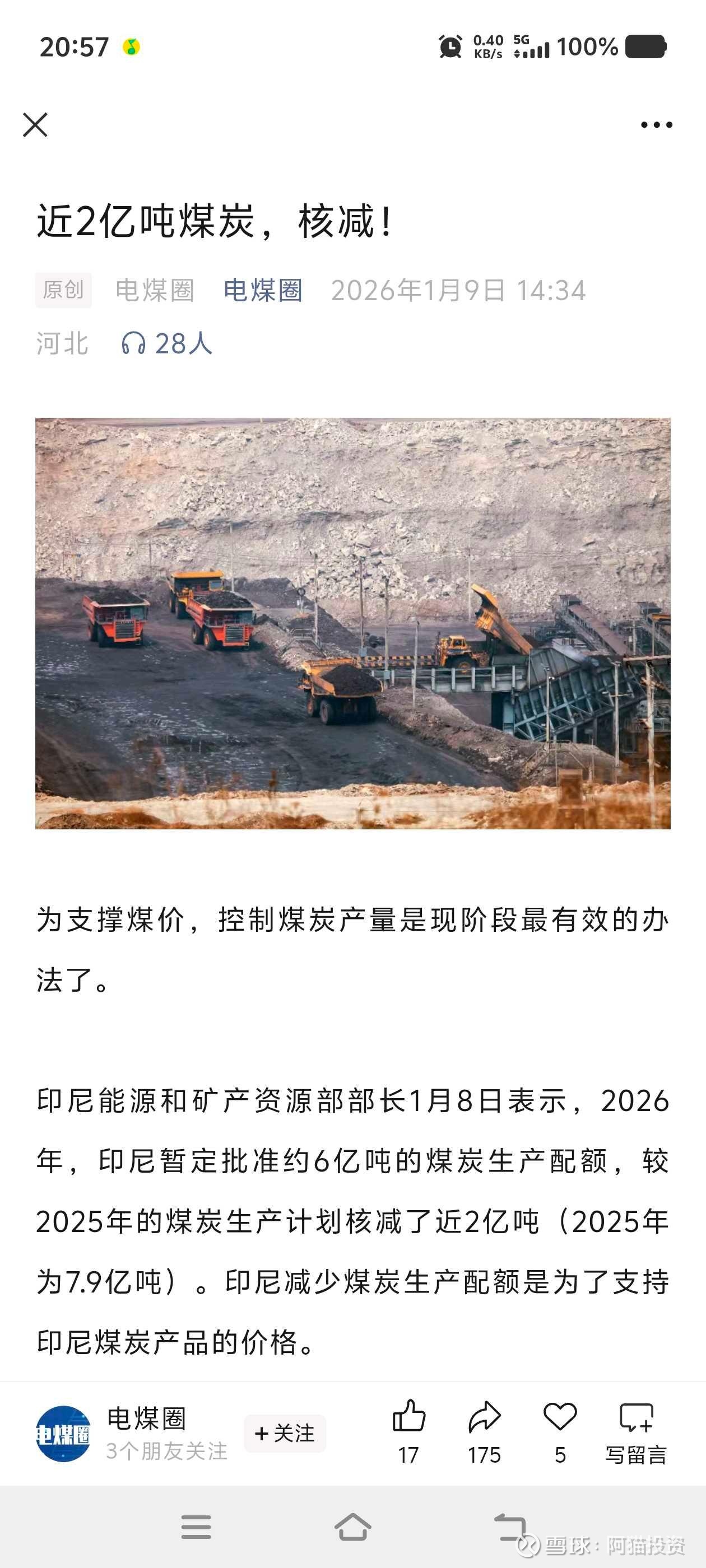 所以得出结论,煤炭将站上历史舞台去,煤黑子的高光时刻即将到来,石油经济将会灭亡,因为一吨石油=2吨煤炭,一吨石油3000元,在新疆,2吨煤炭就是500元,煤炭可以做油,做天然气,做塑料,做一切。抢在手,跟我走,挖一吨,赚一吨,年复一年,日复一日,挖煤致富。@今日话题 @雪球达人秀